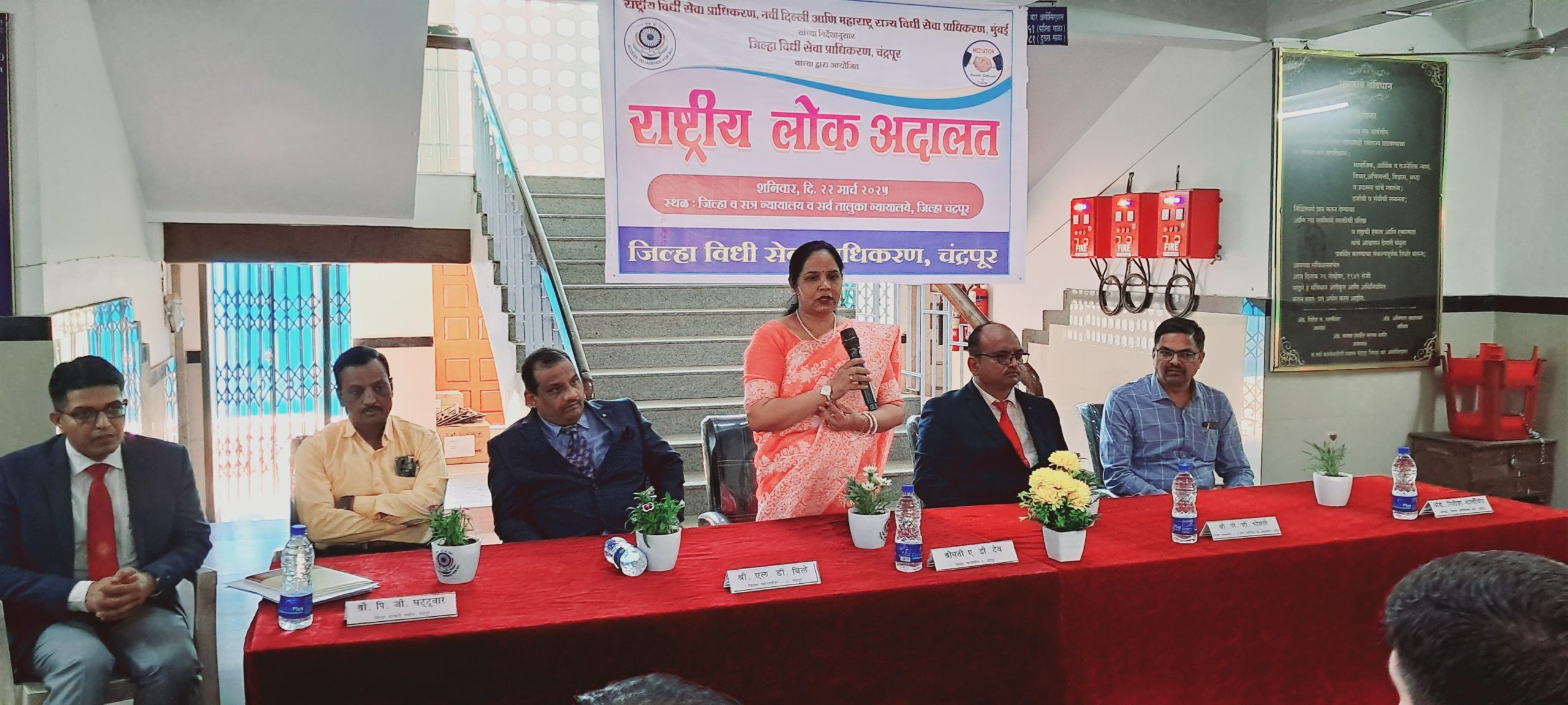 चंद्रपूर :- विधी सेवा प्राधिकरण, नवी दिल्ली आणि महाराष्ट्र राज्य विधी सेवा प्राधिकरण, मुंबई यांच्या निर्देशानुसार तसेच प्रभारी प्रमुख जिल्हा व सत्र न्यायाधीश तथा जिल्हा विधी सेवा प्राधिकरणाच्या अध्यक्षा अभीश्री देव यांच्या मार्गदर्शनाखाली आणि अध्यक्षतेखाली 22 मार्च रोजी चंद्रपूर जिल्हा न्यायालय व सर्व तालुक्यातील न्यायालयामध्ये राष्ट्रीय लोक अदालतीचे आयोजन करण्यात आले होते. National Lok Adalat