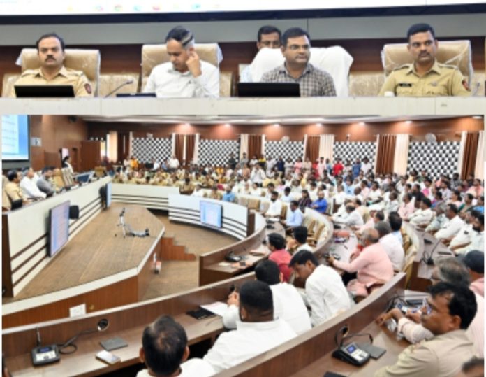 नियोजन सभागृह येथे जिल्हा प्रशासन व पोलिस विभागाच्या वतीने आयोजित जिल्हा शांतता समितीच्या बैठकीत ते बोलत होते. यावेळी अपर पोलिस अधिक्षक ईश्वर कातकडे, मनपा आयुक्त विपीन पालीवाल, राज्य उत्पादन शुल्क विभागाचे अधिक्षक नितीन धार्मिक यांच्यासह, उपविभागीय पोलिस अधिकारी, पोलिस निरीक्षक, पोलिस पाटील, शांतता समितीचे सदस्य, महिला दक्षता समितीचे सदस्य, गणेश मंडळाचे अध्यक्ष, मुर्तीकार, डीजे चालक मालक आदी उपस्थित होते. District level peace committee meeting