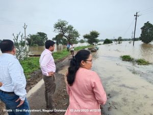 यावेळी जिल्हाधिकारी श्री. गौडा यांनी सावली तालुक्यातील जिबगाव-सिर्सी- साखरी हरांबा व व्याहाड बुज- वैनगंगा नदी मार्गाची व पूर परिस्थिती बाधीत क्षेत्राची पाहाणी केली. तसेच जिबगांव येथील ग्रामस्थ, सरपंच यांच्याशी संवाद साधला. पाहणी दरम्यान उपविभाग अधिकारी अजय चरडे, तहसीलदार प्रांजली चिरडे, गटविकास अधिकारी संजय नैताम, ठाणेदार श्री. पुल्लरवार, वैद्यकीय अधिकारी श्री. चौधरी, मुख्याधिकारी श्री. डोये यांच्यासह मंडळ अधिकारी, तलाठी, ग्रामसेवक आदी उपस्थित होते.