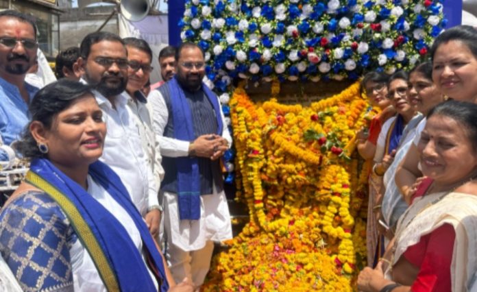 चंद्रपूर :- भारतरत्न डॉ. बाबासाहेब आंबेडकर यांच्या जयंतीनिमित्त Dr Babasaheb Ambedkar 134th Birth Anniversary आमदार किशोर जोरगेवार यांनी चंद्रपूर येथील त्यांच्या पुतळ्याला माल्यार्पण करून विनम्र अभिवादन केले. डॉ. बाबासाहेब आंबेडकर यांनी सामाजिक न्याय, समानता आणि बंधुतेच्या मूल्यांवर आधारित समाजव्यवस्थेची उभारणी केली. त्यांनी दिलेले भारतीय संविधान हे आपल्या लोकशाहीचा मजबूत आधार असून भारतरत्न डॉ. बाबासाहेब आंबेडकर यांचे विचार म्हणजे सामाजिक परिवर्तनाची मशाल असल्याचे आमदार किशोर जोरगेवार म्हणाले. Bharat Ratna Dr. Babasaheb Ambedkar’s thoughts are a torch of social change