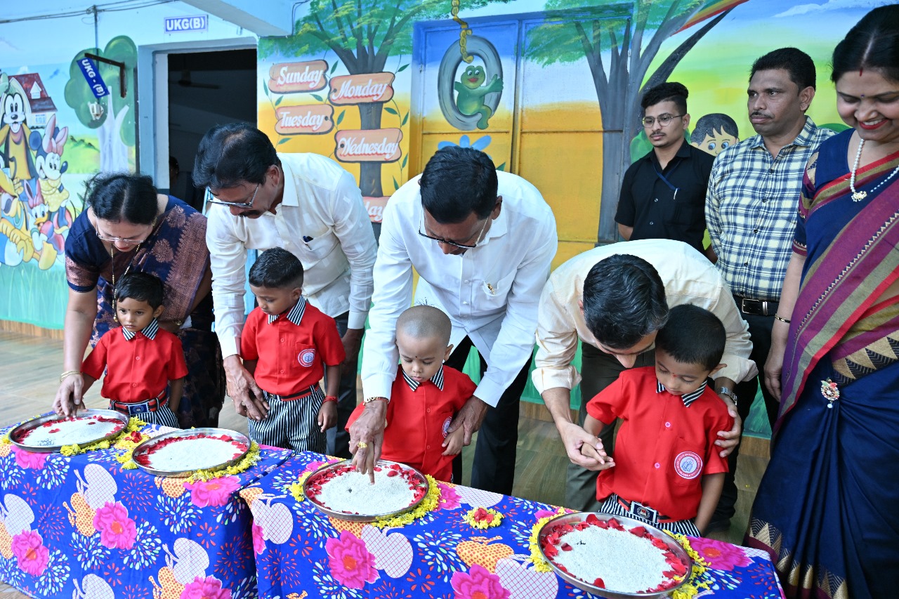 प्रथम अक्षर सेरेमनी उपक्रमांतर्गत उपस्थित मान्यवरांच्या हस्ते चिमुकल्यांना प्रथम हस्ताक्षर गिरविण्यात आले. First letter lessons for toddlers