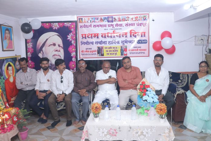 चंद्रपूर :- सर्वधर्म समभाव प्रभू सेवा संस्था, चंद्रपूर या सामाजिक सेवाभावी संस्थेचा प्रथम वर्धापन दिन दिनांक ८ जुलै रोजी डेबू सावली वृध्दाश्रम, देवाडा येथे मोठ्या उत्साहात व स्नेहपूर्वक वातावरणात पार पडला. first anniversary of the Sarva Dharma Samabhav Prabhu Seva Sanstha