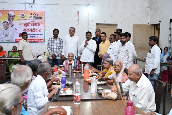 चंद्रपूर :- महाराष्ट्र राज्याचे माजी वने व सांस्कृतिक कार्य मंत्री, आमदार श्री. सुधीर मुनगंटीवार यांचा वाढदिवस ३० जुलै रोजी साजरा होतो. त्यांच्या वाढदिवसाचे औचित्य साधून विविध राज्यभर व जिल्ह्यात विविध सामाजिक उपक्रम राबवले जातात. रविवारी (२७ जुलै) बल्लारपूर येथील ओबीसी आघाडीचे अध्यक्ष अमोल मोरे यांनी विसापुर (जि. चंद्रपूर) येथील मातोश्री वृद्धाश्रमात जेष्ठांसाठी अन्नदान व भेटवस्तू वितरणाच्या कार्यक्रमाने लोकसेवेच्या उपक्रमाची सुरूवात केली. MLA Sudhir Mungantiwar’s birthday begins with public service activities