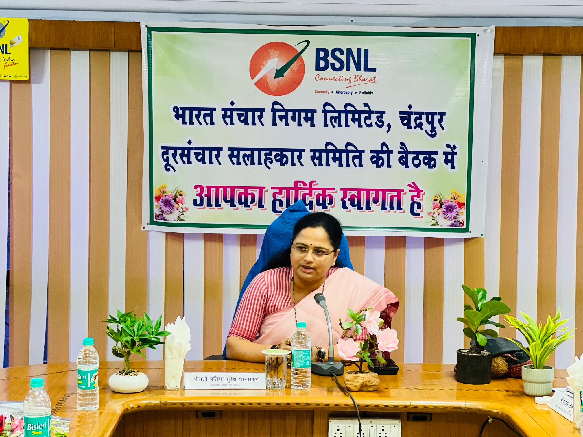 चंद्रपूर :- जिल्ह्यात भारत संचार निगम लिमिटेड (BSNL) च्या सेवांचा आढावा घेण्यासाठी दूरसंचार सल्लागार समितीची बैठक खासदार प्रतिभा धानोरकर यांच्या अध्यक्षतेखाली बैठक पार पडली. या बैठकीत बीएसएनएलच्या सध्याच्या स्थितीवर चिंता व्यक्त करत, जिल्ह्यातील प्रत्येक गावात मोबाइल सेवा आणि ब्रॉडबँड सुविधा पोहोचवण्यावर भर देऊन बीएसएनएलला ‘अच्छे दिन’ आणण्याचे निर्देश खासदार प्रतिभाताई धानोरकर यांनी दिले. MP Pratibha Dhanorkar’s firm stand to give ‘good days’ to BSNL