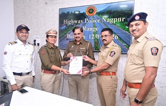 चंद्रपूर :- जिल्ह्यातील महामार्गांवर अपघाताचे प्रमाण कमी करण्यासाठी सातत्याने प्रभावी उपाययोजना राबविणाऱ्या महामार्ग पोलीस चंद्रपूरने सन २०२५-२६ या वर्षात उल्लेखनीय कामगिरी नोंदवली आहे. या उत्कृष्ट कार्याबद्दल महामार्ग पोलीस प्रादेशिक विभाग, नागपूर यांच्या वतीने चंद्रपूर युनिटला सर्वोत्तम कामगिरीचा प्रथम पुरस्कार प्रदान करण्यात आला असून प्रभारी अधिकारी माया चाटसे यांचा सन्मान करून त्यांना प्रमाणपत्र देण्यात आले आहे. Highway Police Chandrapur Honored with First Prize for Outstanding Performance