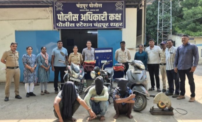 चंद्रपूर :- डॉ बाबासाहेब आंबेडकर जयंती दिनी चोरी गेलेल्या वाहनाच्या शोधात चंद्रपूर शहर पोलिसांना गुन्हेगारीची टोळीच गळाला लागली, घरफोडी, जबरी चोरी, वाहन चोरी करणारी टोळीचा पोलिसांनी पर्दाफाश केला, यात 4 आरोपींना अटक करीत 7 वेगवेगळ्या गुन्ह्यातील 5,46,000 रुपयांचा मुद्देमाल जप्त करण्यात आला. House burglary, extortion, vehicle theft arrested