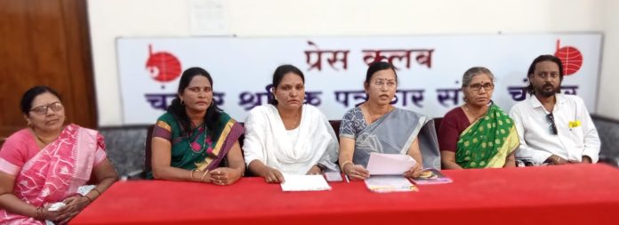 यावेळी संदिप देव जिल्हा उपाध्यक्ष युवा आघाडी तथा चंद्रपूर महानगर निरीक्षक, मोनाली पाटील शहर उपाध्यक्षा, इंदू डोंगरे, सुलभा चांदेकर, शोभा वाघमारे, कल्पना भसारकर, विश्रांती डांगे, छाया वाघमारे आदींची उपस्थिती होती.