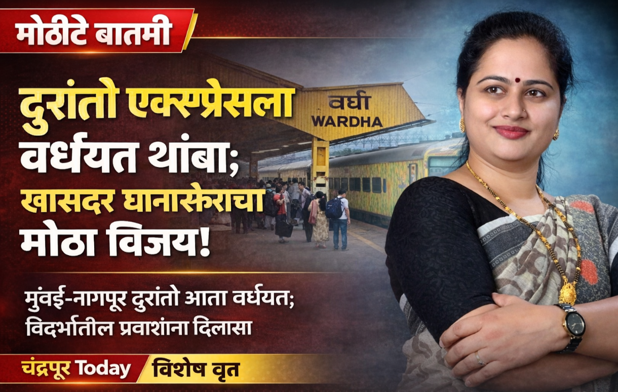 चंद्रपूर :- खासदार प्रतिभा धानोरकर यांच्या आक्रमक पाठपुराव्याला दिल्ली दरबारी मोठे यश प्राप्त झाले आहे. नागपूर-मुंबई दरम्यान सुसाट धावणारी आणि प्रवाशांची पहिली पसंती असलेली १२२८९/१२२९० ‘दुरंतो एक्सप्रेस’ आता वर्धा रेल्वे स्थानकावर अधिकृतपणे थांबणार आहे. रेल्वे बोर्डाने २७ मार्च २०२६ रोजी (आदेश क्र. CC-114/2026) या ऐतिहासिक थांब्याला हिरवा कंदील दाखवला असून, यामुळे वर्धा, चंद्रपूर, यवतमाळ आणि गडचिरोली जिल्ह्यातील हजारो विद्यार्थी, रुग्ण आणि व्यावसायिकांचे मुंबईला जाण्याचे स्वप्न अधिक सुकर झाले आहे. Mumbai – Nagpur ‘Duronto’ Granted Stoppage at Wardha