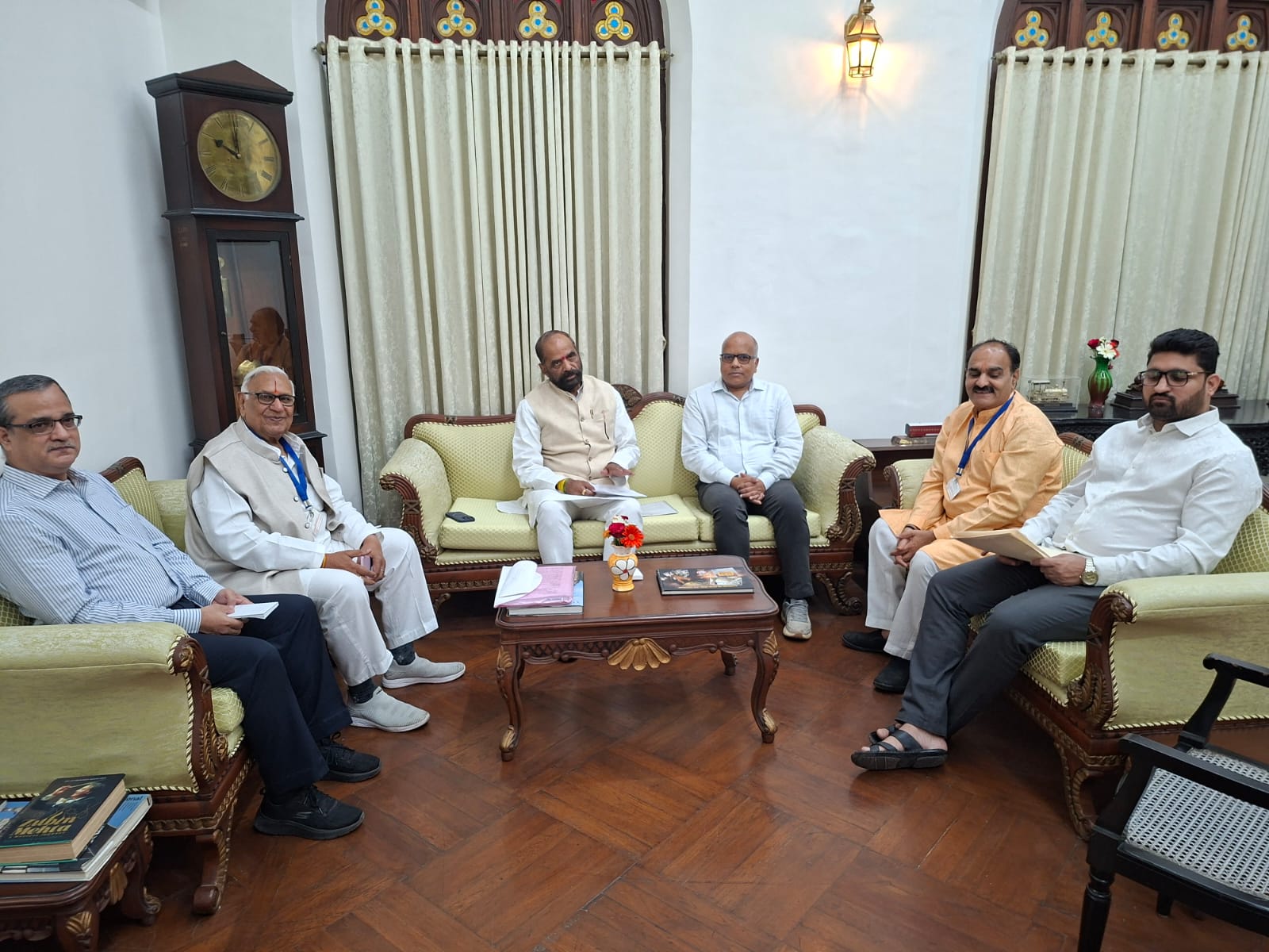 चंद्रपूर :- दि. 23 एप्रिल 2026 रोजी हंसराज अहीर यांनी मुंबई येथे मध्य रेल्वेचे महाव्यवस्थापक यांच्यासोबत चंद्रपूर जिल्ह्यातील विविध रेल्वे संबंधित मुद्द्यांवर सविस्तार चर्चा केली. या बैठकीत बल्लारशाह-मुंबई आणि बल्लारशाह-पुणे दरम्यान नवी रेल्वे सेवा सुरू करण्याबाबत प्रमुख चर्चा झाली. या बैठकीत चंद्रपूर रेल्वे प्रवासी सेवा संस्थेचे कार्याध्यक्ष दामोदर मंत्री (मध्य रेलवे ZRUCC सदस्य) उपस्थित होते.