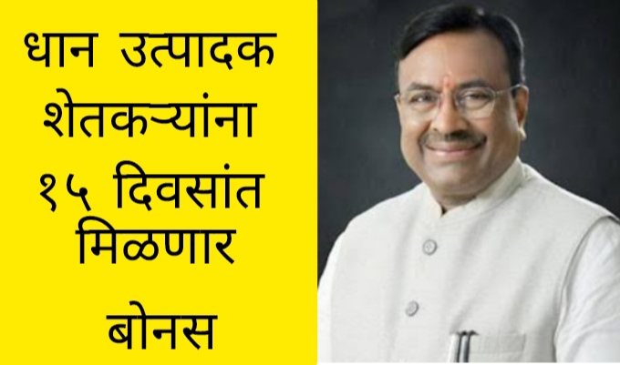 चंद्रपूर :- राज्यातील धान उत्पादक शेतकऱ्यांसाठी मोठा दिलासा देणारी बातमी समोर आली आहे. येत्या १५ दिवसांत शेतकऱ्यांना प्रती हेक्टरी २० हजार रुपयांचा प्रोत्साहनपर बोनस मिळणार आहे. आमदार श्री. सुधीर मुनगंटीवार MLA Sudhir Mungantiwar यांच्या आग्रही मागणीला अन्न व नागरी पुरवठा विभागाच्या साचिव सिंगल मॅडम यांनी आश्वासन दिले आहे.