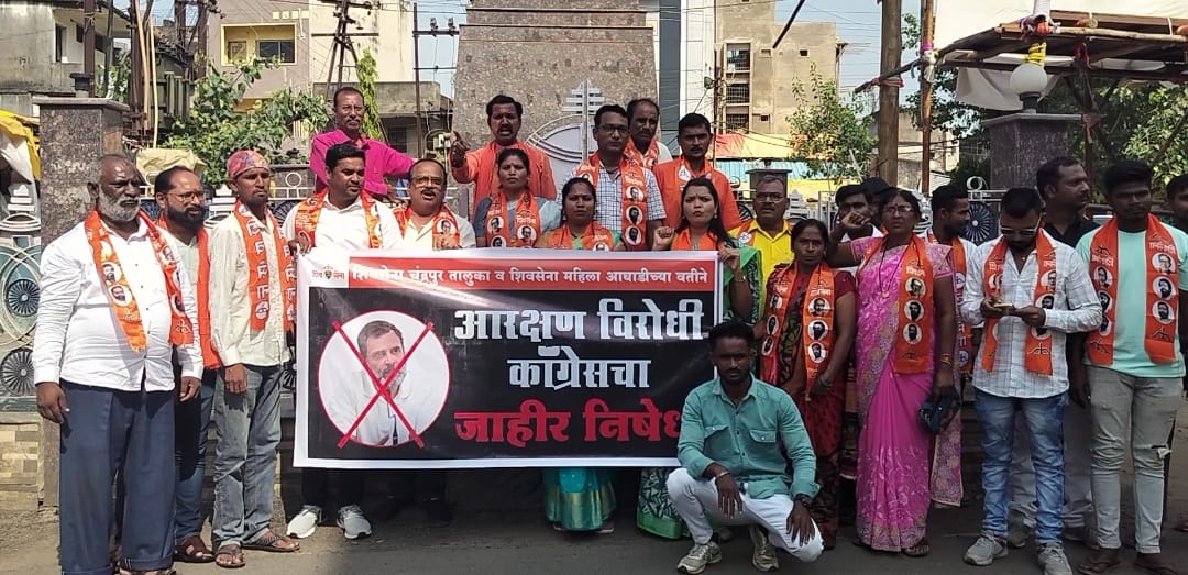 Public protest of anti-reservation Congress MP Rahul Gandhi on behalf of Shiv Sena Chandrapur taluka and Mahila Aghadi