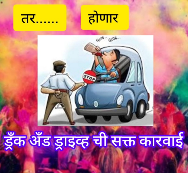 या कालावधीत काही अतिउत्साही तरूणमंडळी मद्यप्राशन करून दुचाकी / चारचाकी वाहने भरधाव वेगाने, बेदरकारपणे चालवितात. तसेच रोडने रॅश ड्रायव्हिंग, (Rash Driving) स्टंटबाजी सारखे कृत्य करतात. त्यामुळे मोठ्या प्रमाणात गंभिर अपघात घडुन जिवितहानी होत असते. Strict action will be taken against drunk drivers