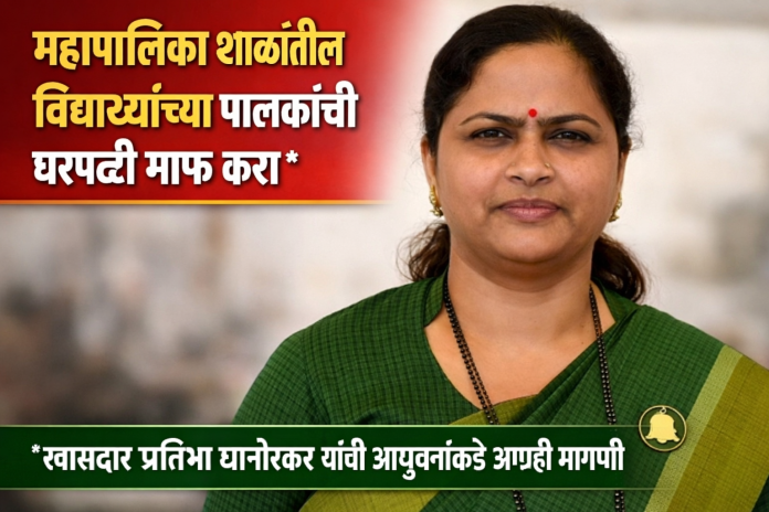 चंद्रपूर :- चंद्रपूर शहर महानगरपालिकेच्या शाळांची खालावलेली पटसंख्या आणि शाळा बंद होण्याचे संकट लक्षात घेता, खासदार प्रतिभा धानोरकर MP Pratibha Dhanorkar यांनी एक अत्यंत महत्त्वपूर्ण आणि क्रांतिकारी मागणी केली आहे. महापालिका शाळांमध्ये नव्याने प्रवेश घेणाऱ्या विद्यार्थ्यांच्या पालकांना मालमत्ता करातून पूर्णपणे सूट देण्यात यावी, अशा आशयाचे पत्र त्यांनी महानगरपालिका आयुक्तांना दिले आहे. या निर्णयामुळे गरीब कुटुंबांना आर्थिक आधार मिळेल आणि पालिकेच्या शाळांना नवसंजीवनी मिळेल, असा विश्वास त्यांनी व्यक्त केला आहे. Waive the house rent of parents of students in MNC schools